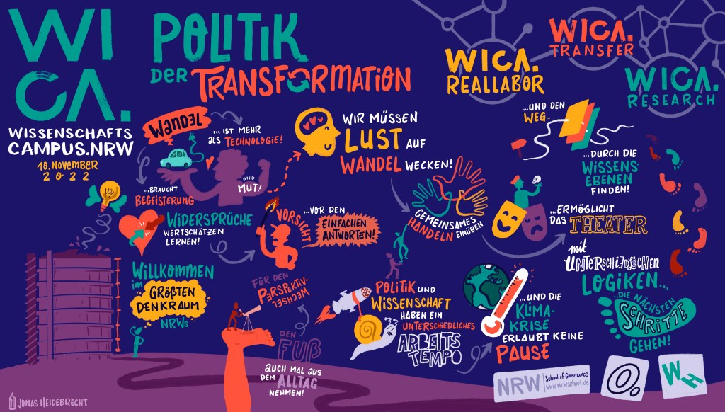 Graphisch begleitet wurde der Abend von Jonas Heidebrecht, entstanden ist ein tolles Motiv, das die Leitthemen des WICA Auftakts illustriert.